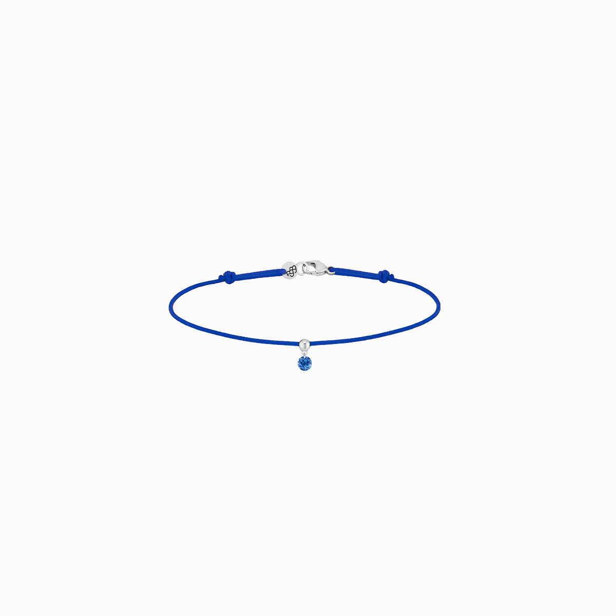 The symbolic purity of the 0.15-carat blue sapphire combined with the white gold make this BB cord bracelet a rare, colorful pearl!