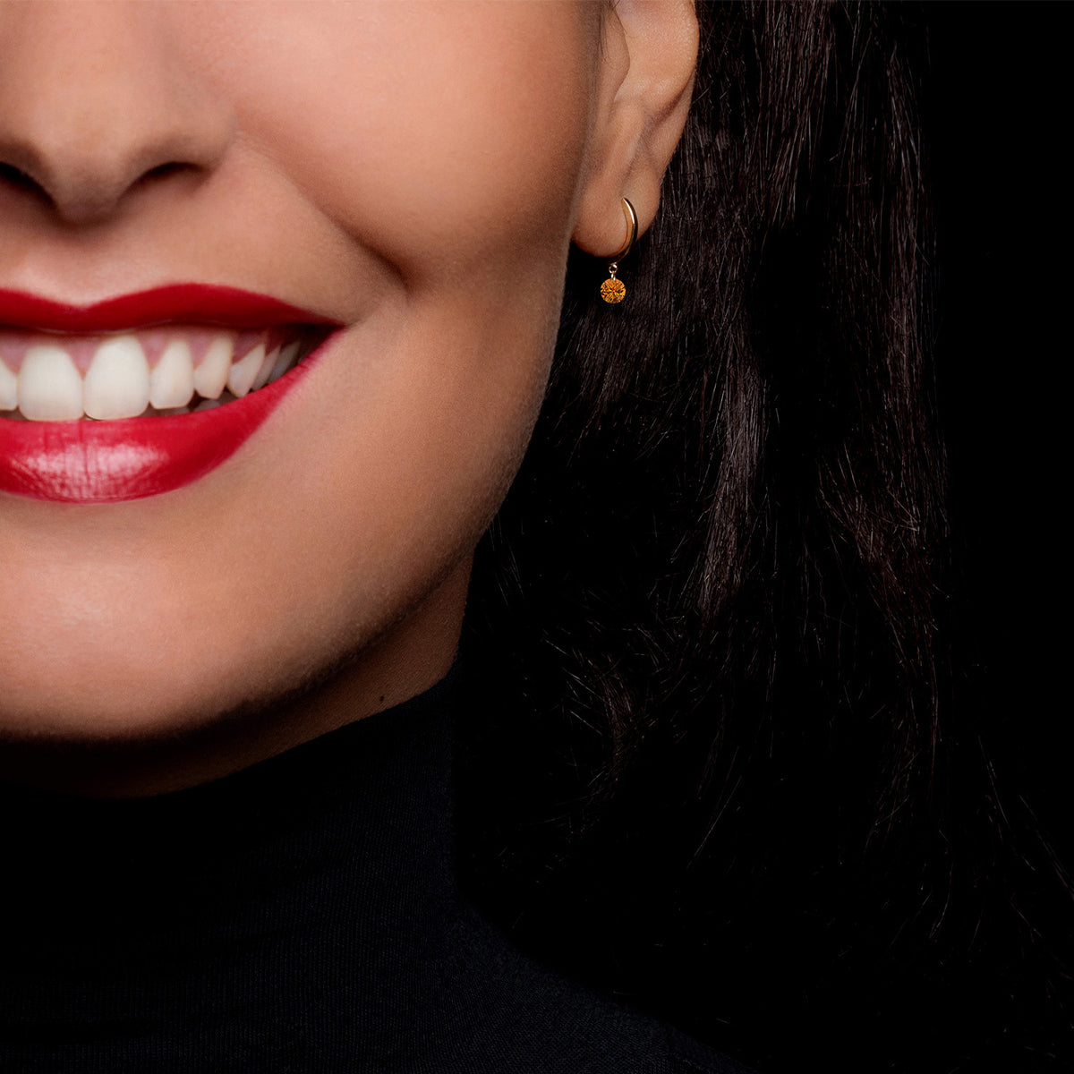 Wearing these mini creoles in yellow gold with their orange sapphires, each weighing 0.15 carats, is like prolonging the magical moment when the last rays of sunlight graze the horizon on a beautiful summer evening.