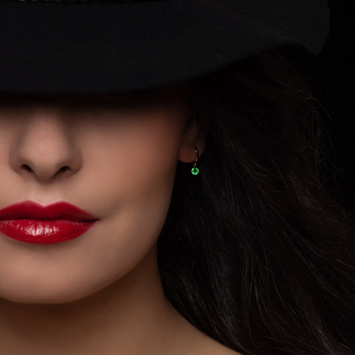 If, like Scarlett Johansson, you have green eyes, these yellow gold creoles with their luminous tsavorites (0.13 carats each) will make you simply magnetic!