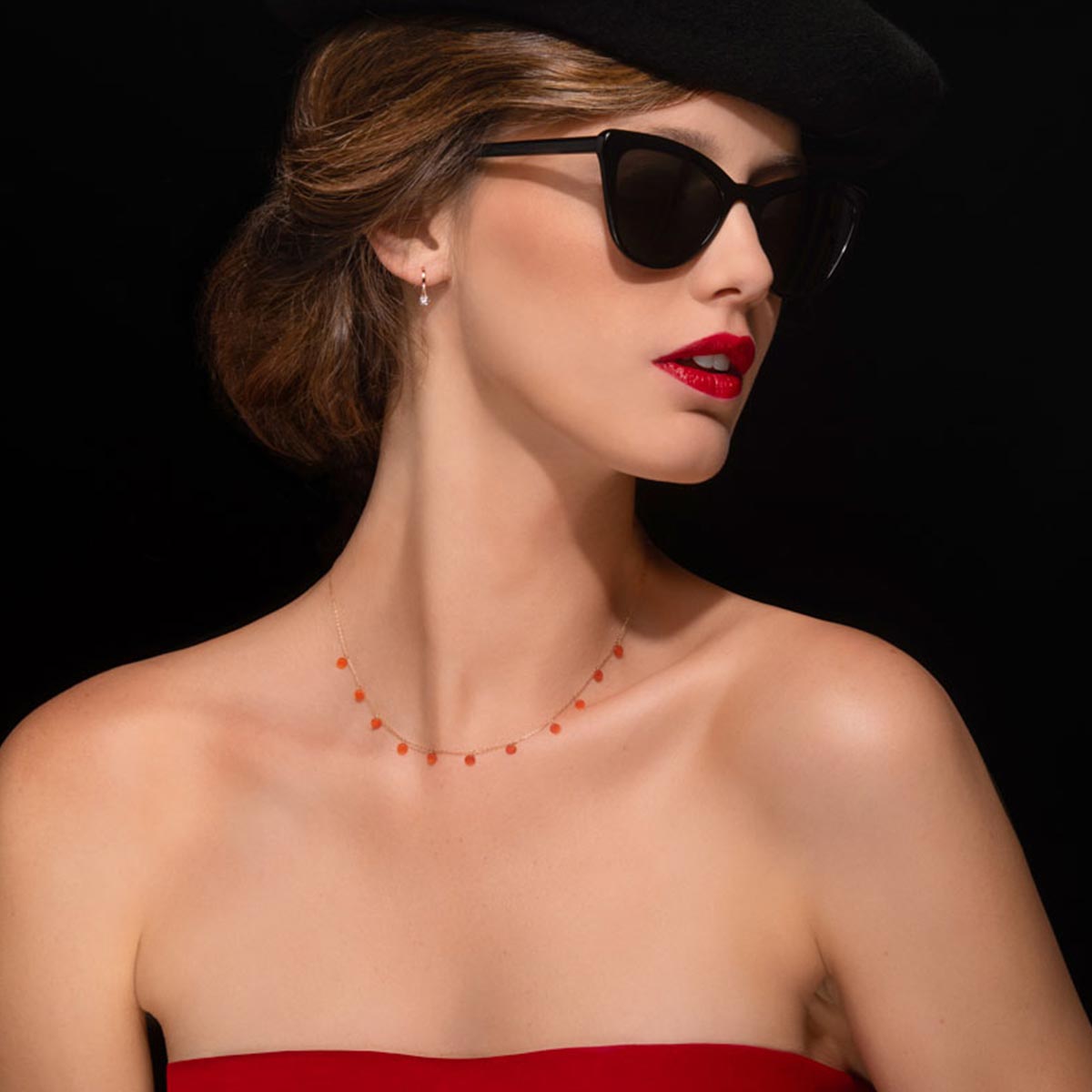 With its orange-brown tones, the POLKA Cornaline necklace will warm your décolleté.