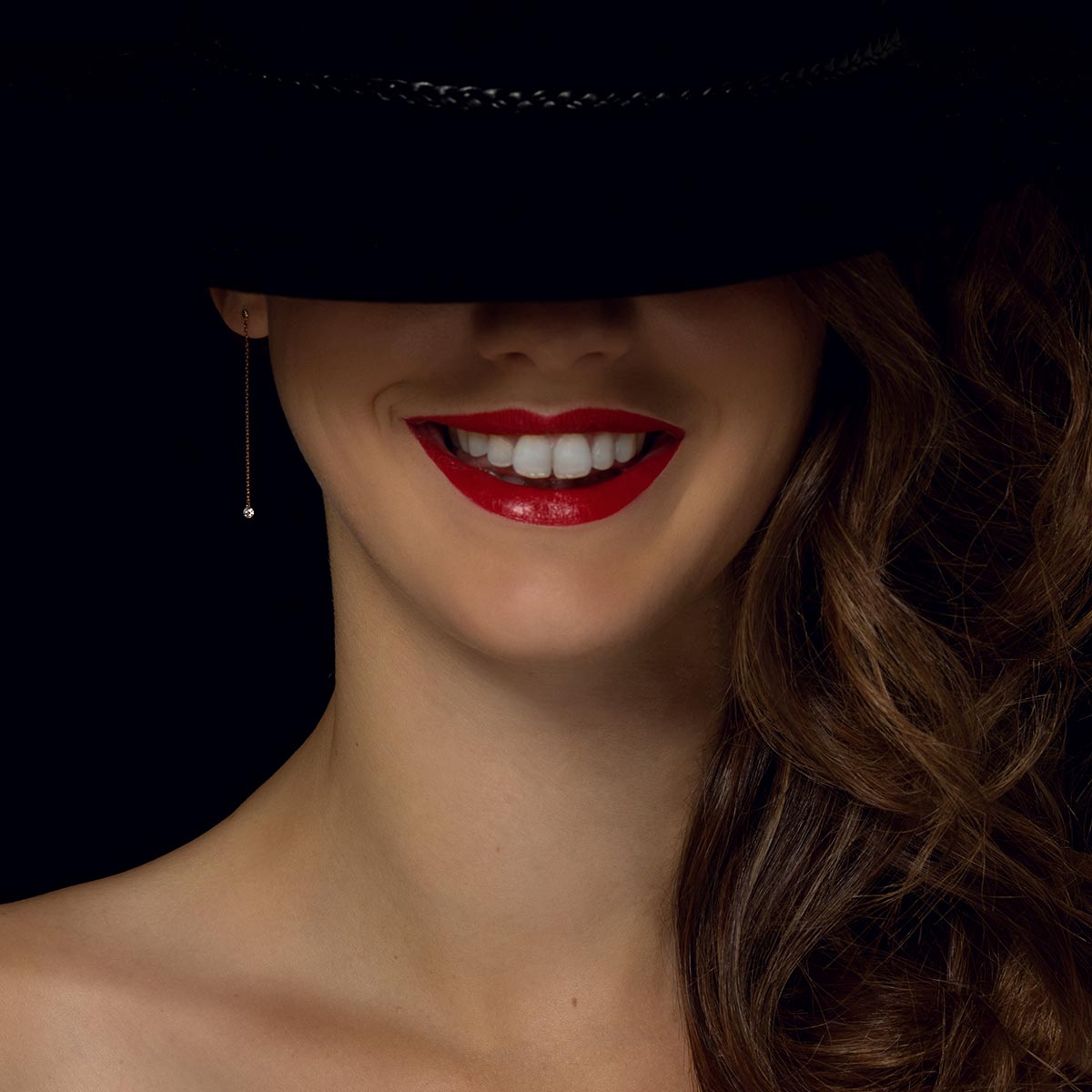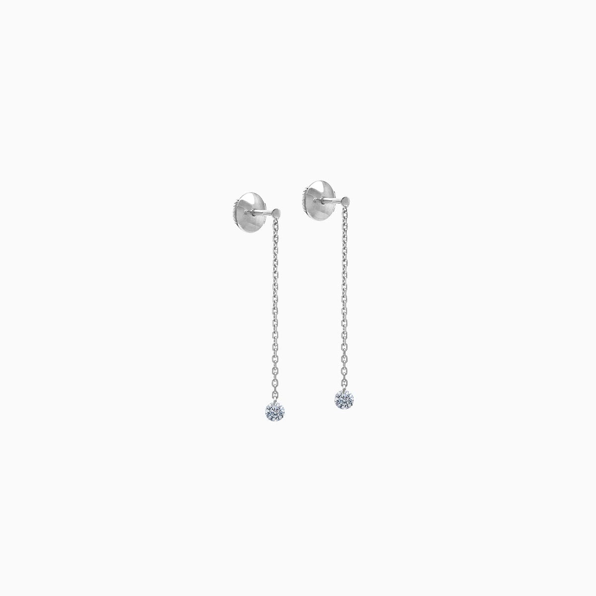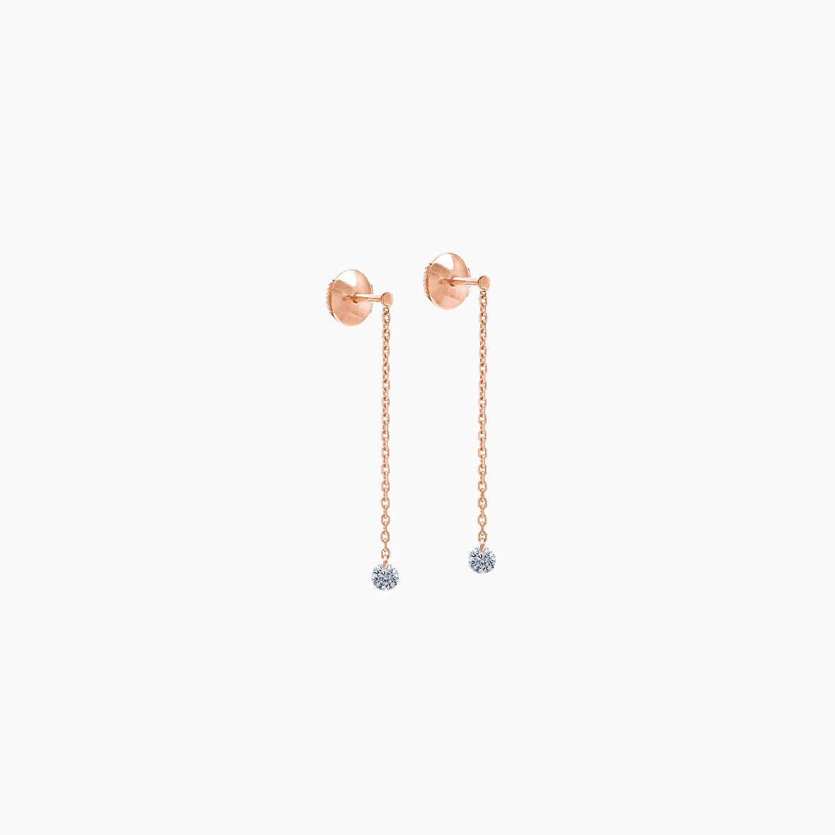 Two "naked" diamonds, each weighing 0.07 carat, suspended from a fine chain of faceted white, yellow or rose gold, dance tirelessly on either side of your face.