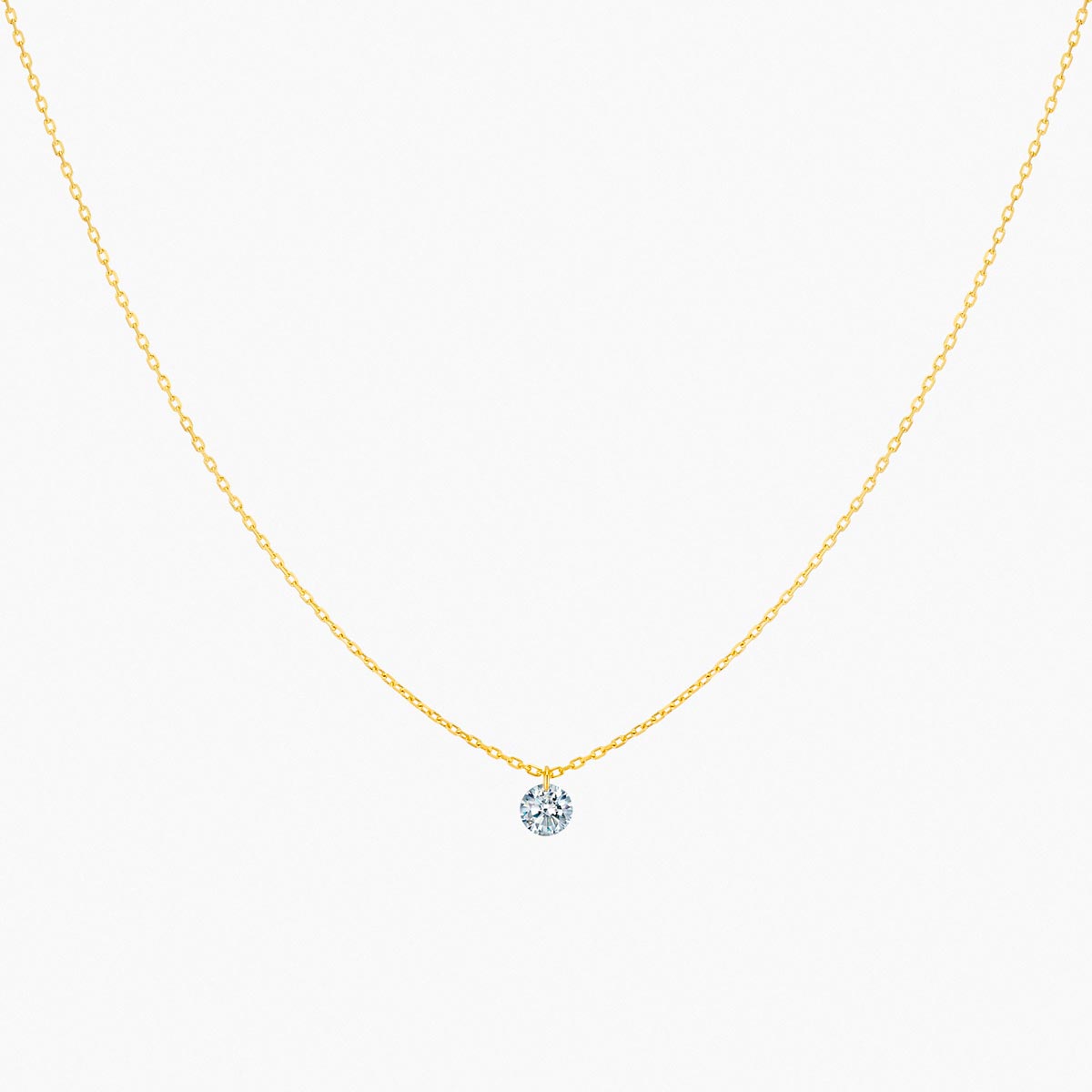 The gold melts into the skin to better highlight the 0.50-carat diamond, bare, mounted without setting, quivering in the hollow of your neck. Freed from the weight of the gold, it sparkles and reveals its full brilliance.