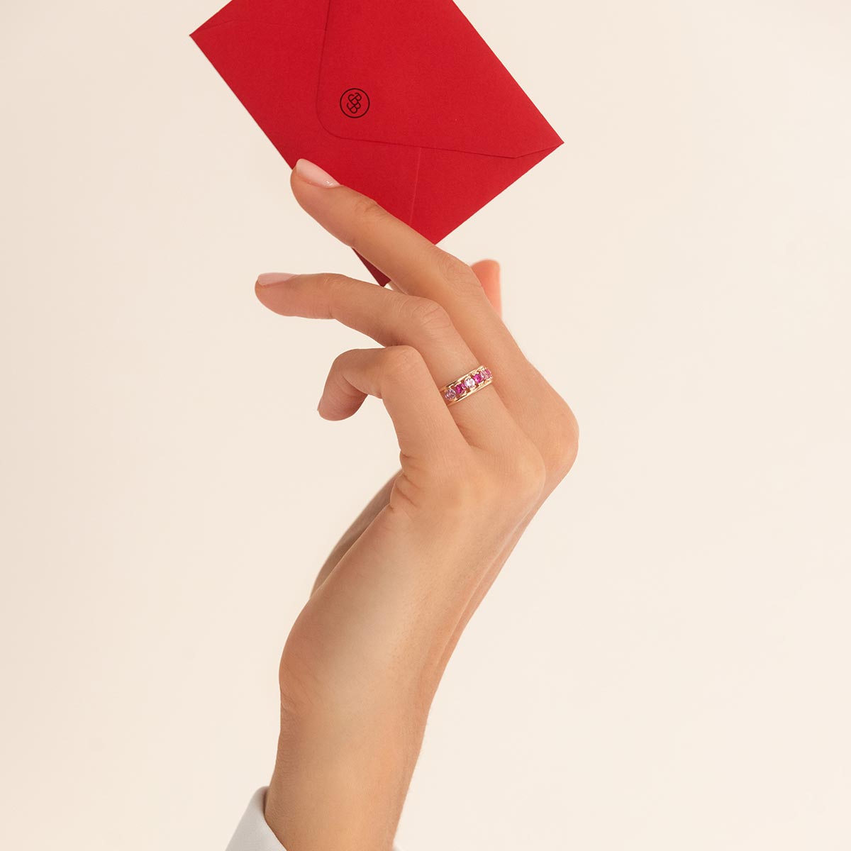 Discover the HULA HOOP Rose ring in its ruby and pink sapphire version.
