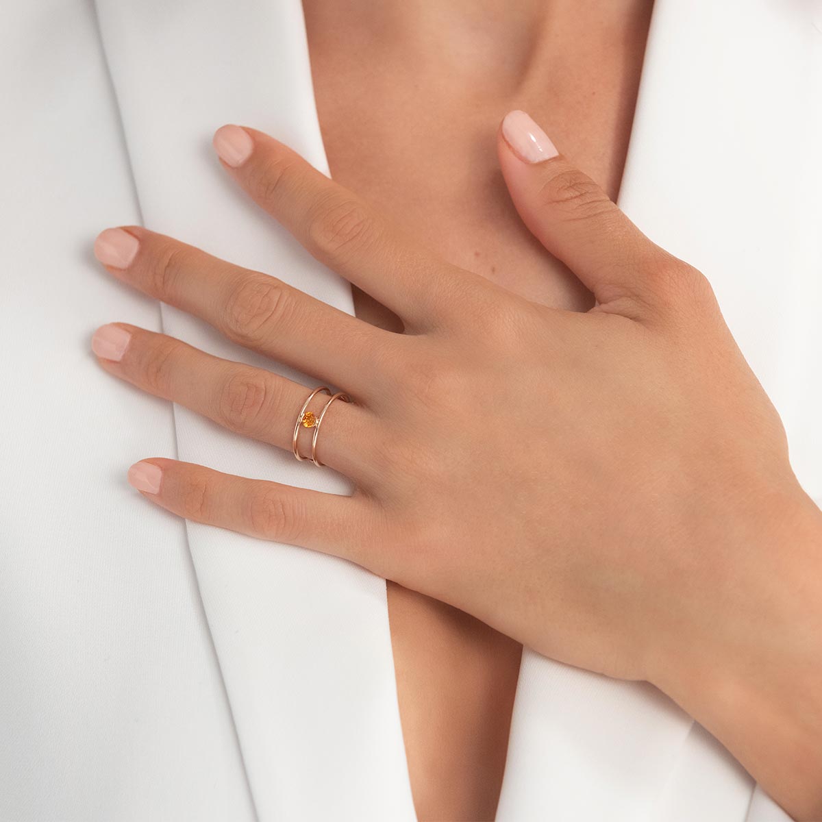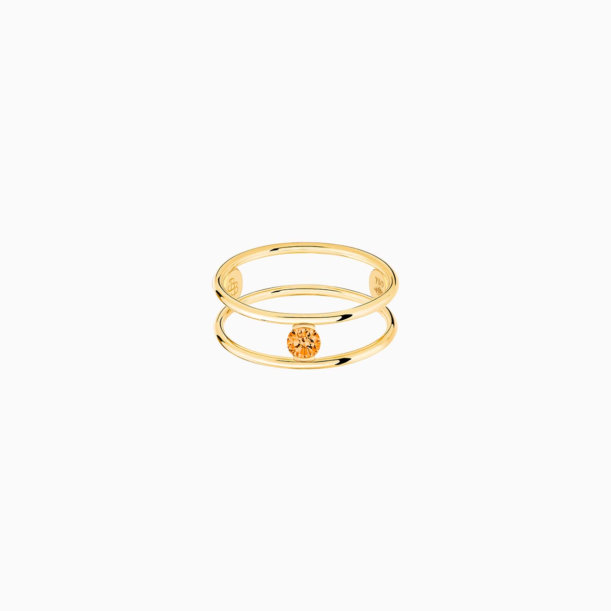 Inspired by the hoops of our childhood, this HULA HOOP ring features two yellow gold rings delicately joined by a 0.23-carat orange sapphire.