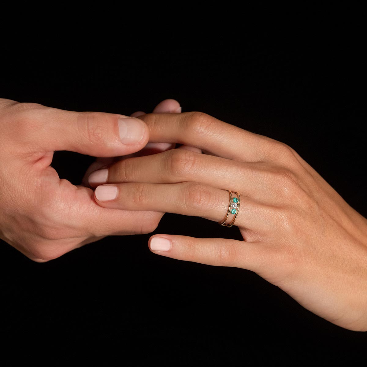 In its emerald and diamond version, the HULA HOOP Trilogy ring celebrates 40 years of happy union, a record to be beaten...