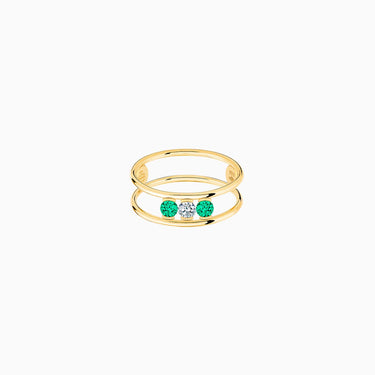 DIAMOND AND EMERALD TRILOGY RING, TOTAL WEIGHT 0.25 CARAT
