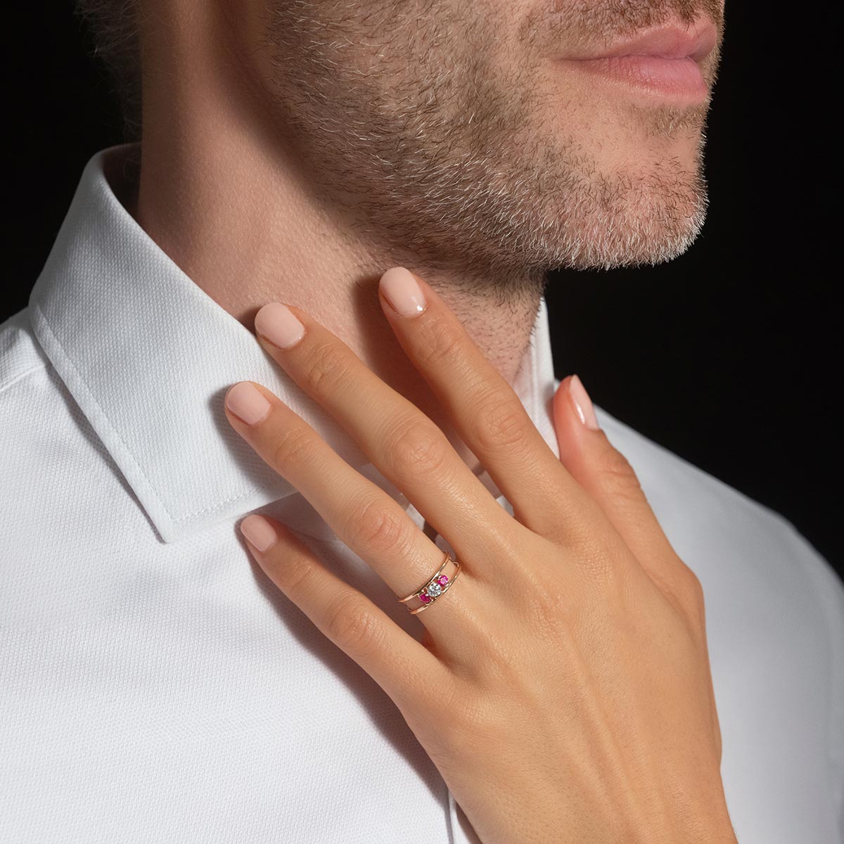 Two passion-red rubies and a diamond weighing a total of 0.45 carats speak volumes about his feelings for you...