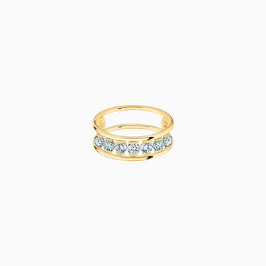 Preciously set, like a ribbon of diamonds, between two rings of white, yellow or rose gold.