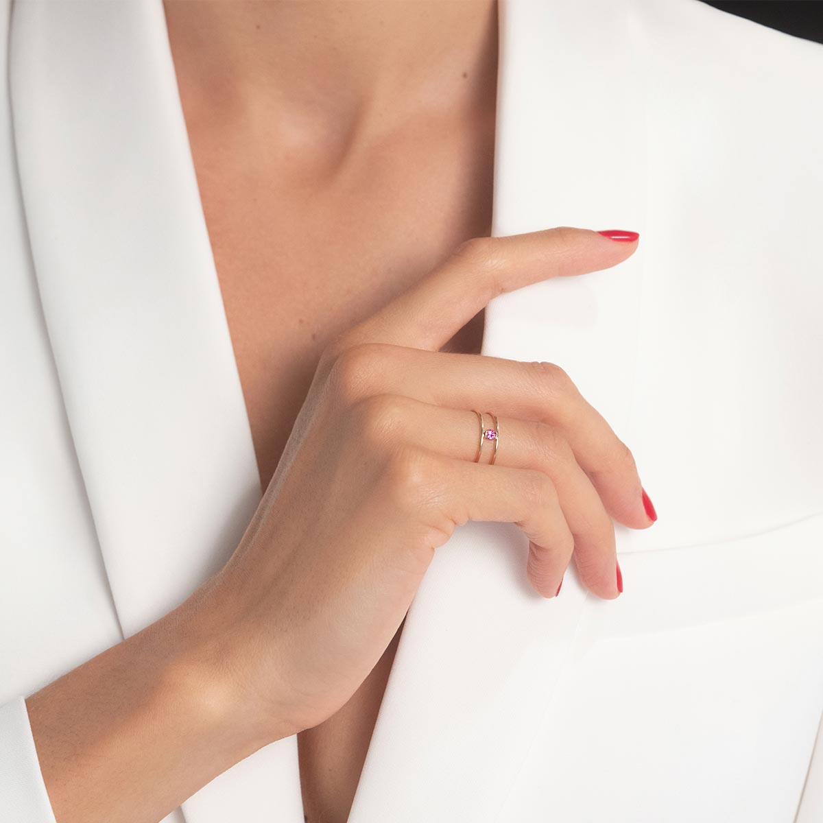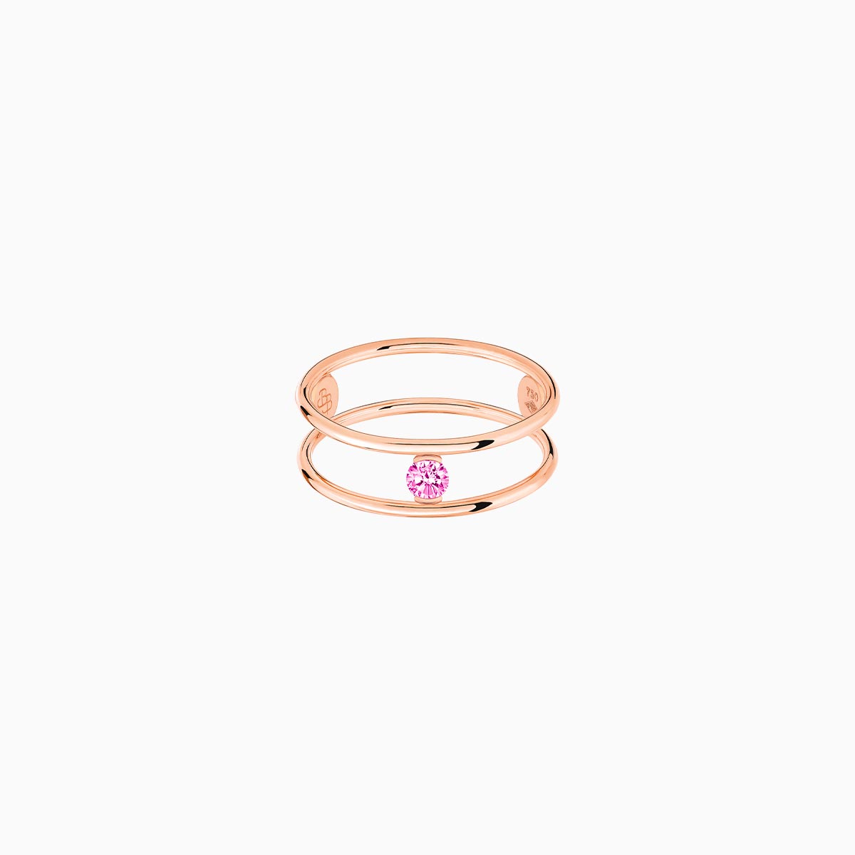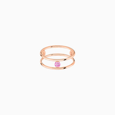 A 0.12-carat pink sapphire delicately mounted on two rose gold rings...
