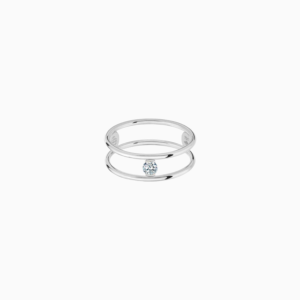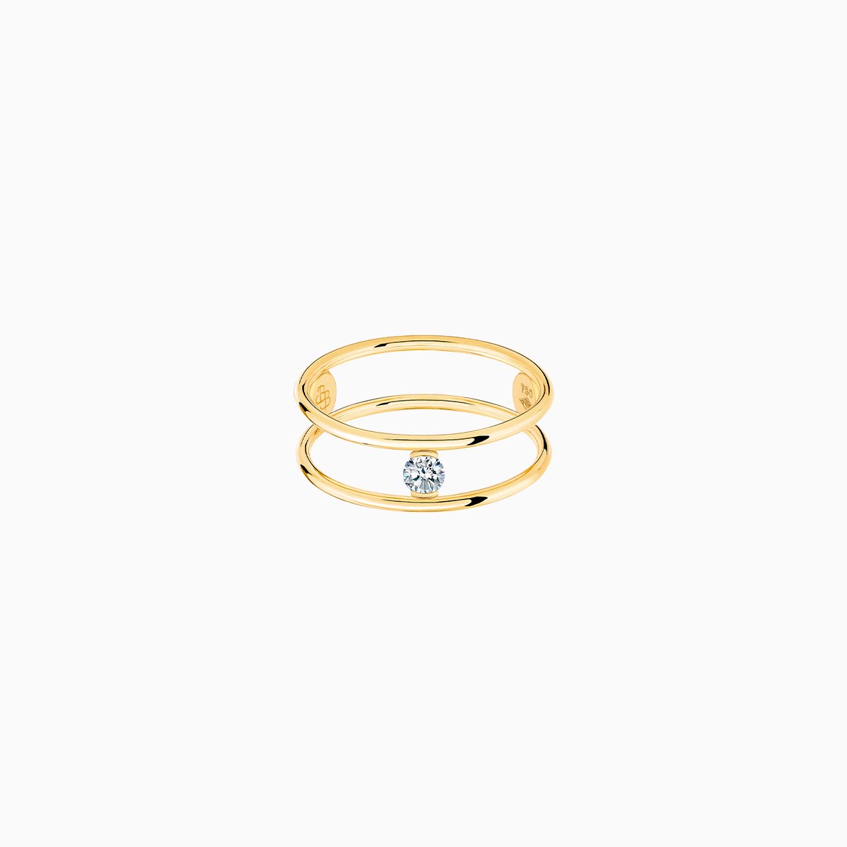 A ring of pure design featuring two rings of white, yellow or pink gold, symbolically united by a 0.10-carat diamond.