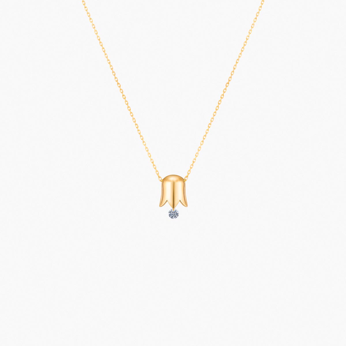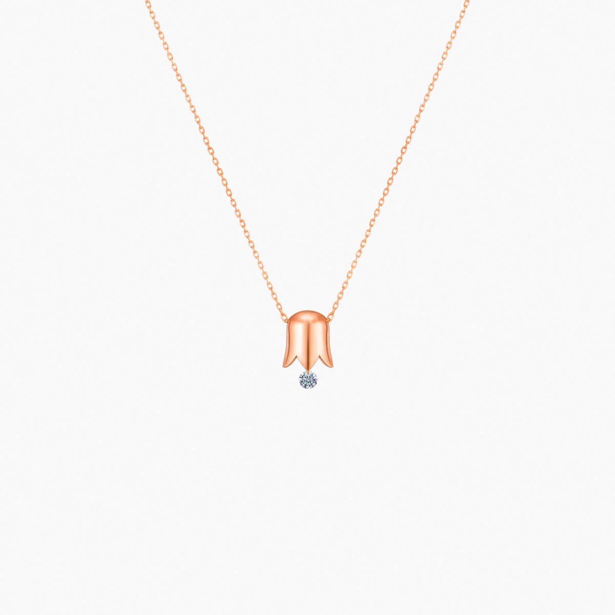 Un tintineante diamante de 0,07 quilates suspendido bajo una delicada campana de lirio de los valles en oro blanco, amarillo o rosa 750‰.