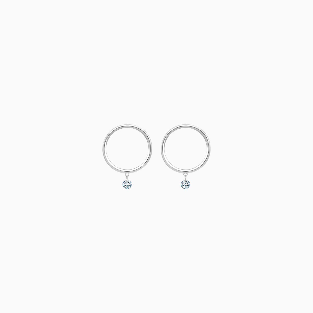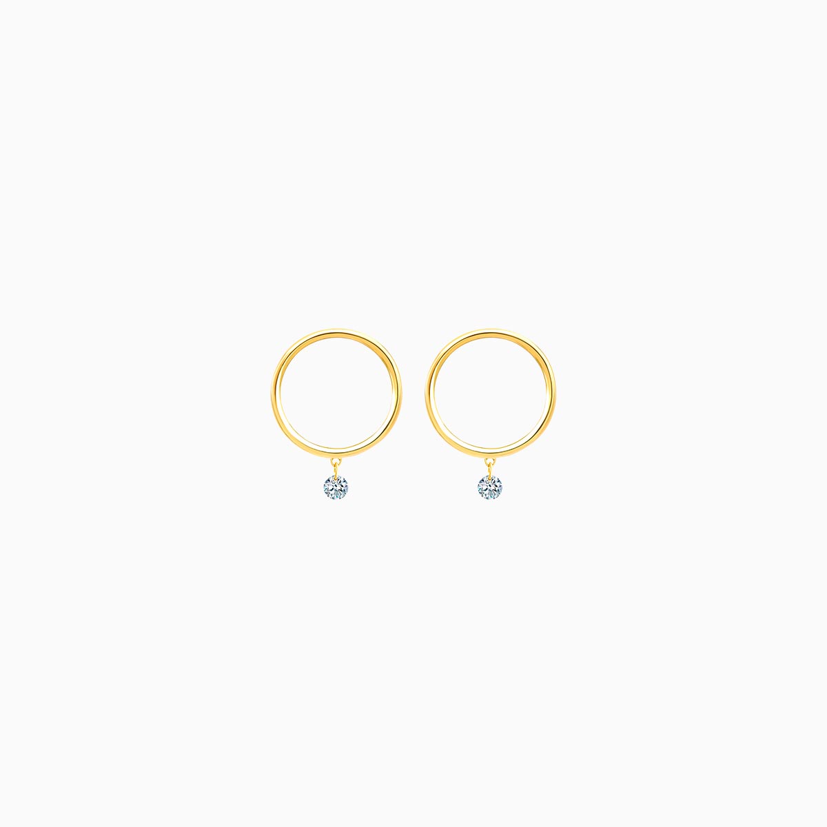 Son las últimas incorporaciones a la colección EXCENTRIQUE. Como algo natural, dos anillos perfectos de oro blanco, amarillo o rosa se colocan en sus lóbulos y, como siempre, dos diamantes sueltos (de 0,10 quilates cada uno) tiemblan y vibran "excéntricamente" a cada uno de sus movimientos.