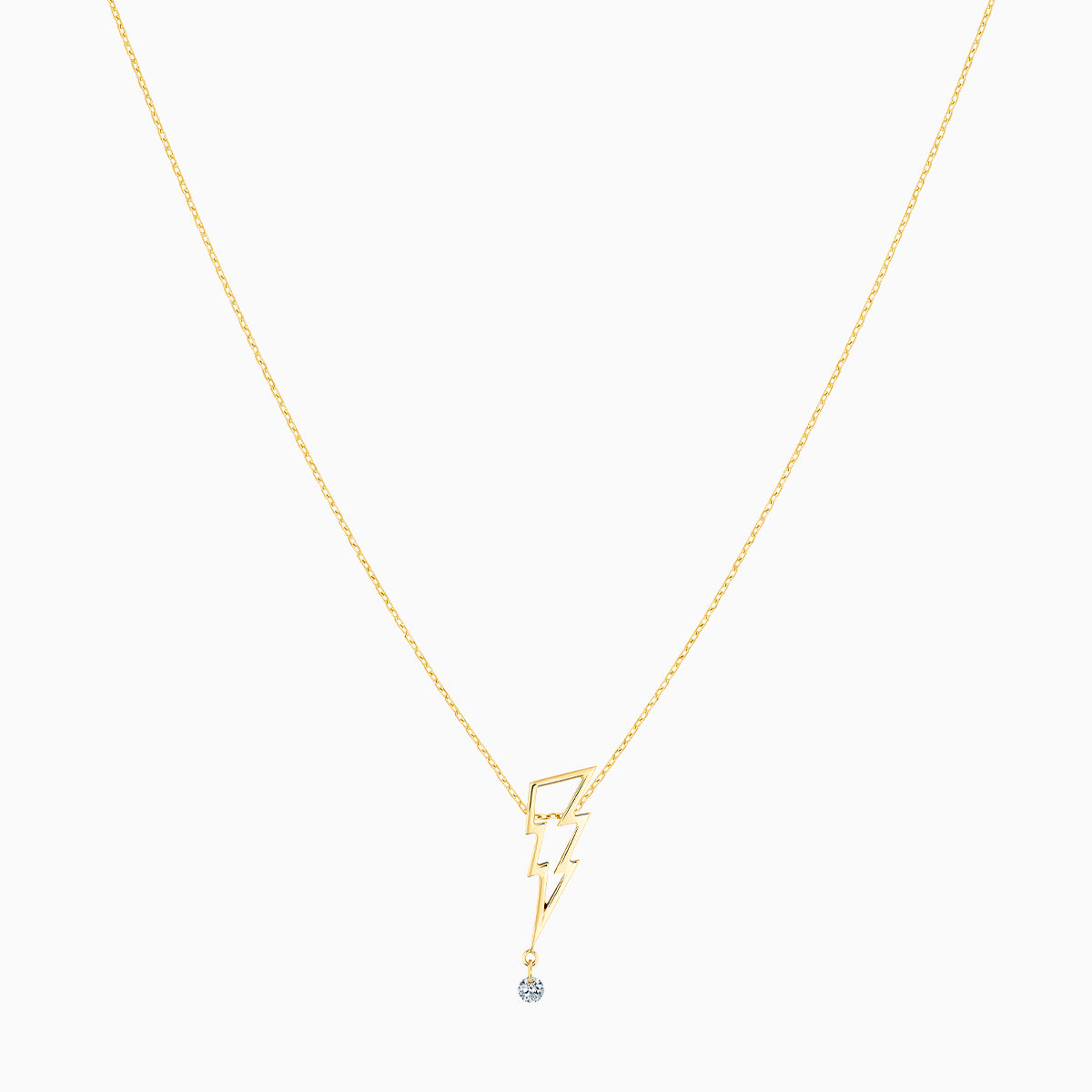 El diamante de talla brillante es un diamante natural de color G con claridad SI1. Está montado suelto (diamante calado), en una cadena facetada de color blanco o amarillo 750‰.